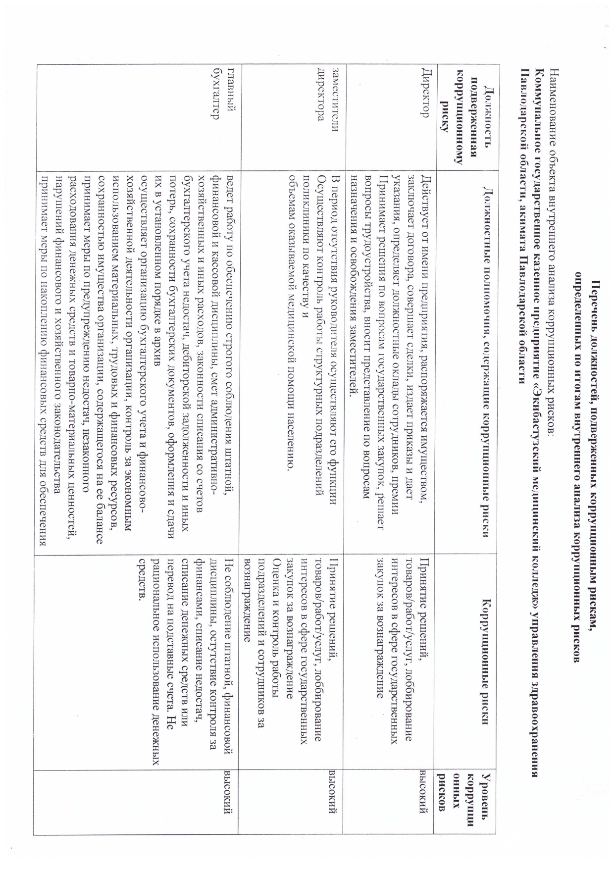 реестр должностей, подверженных коррупционным рискам