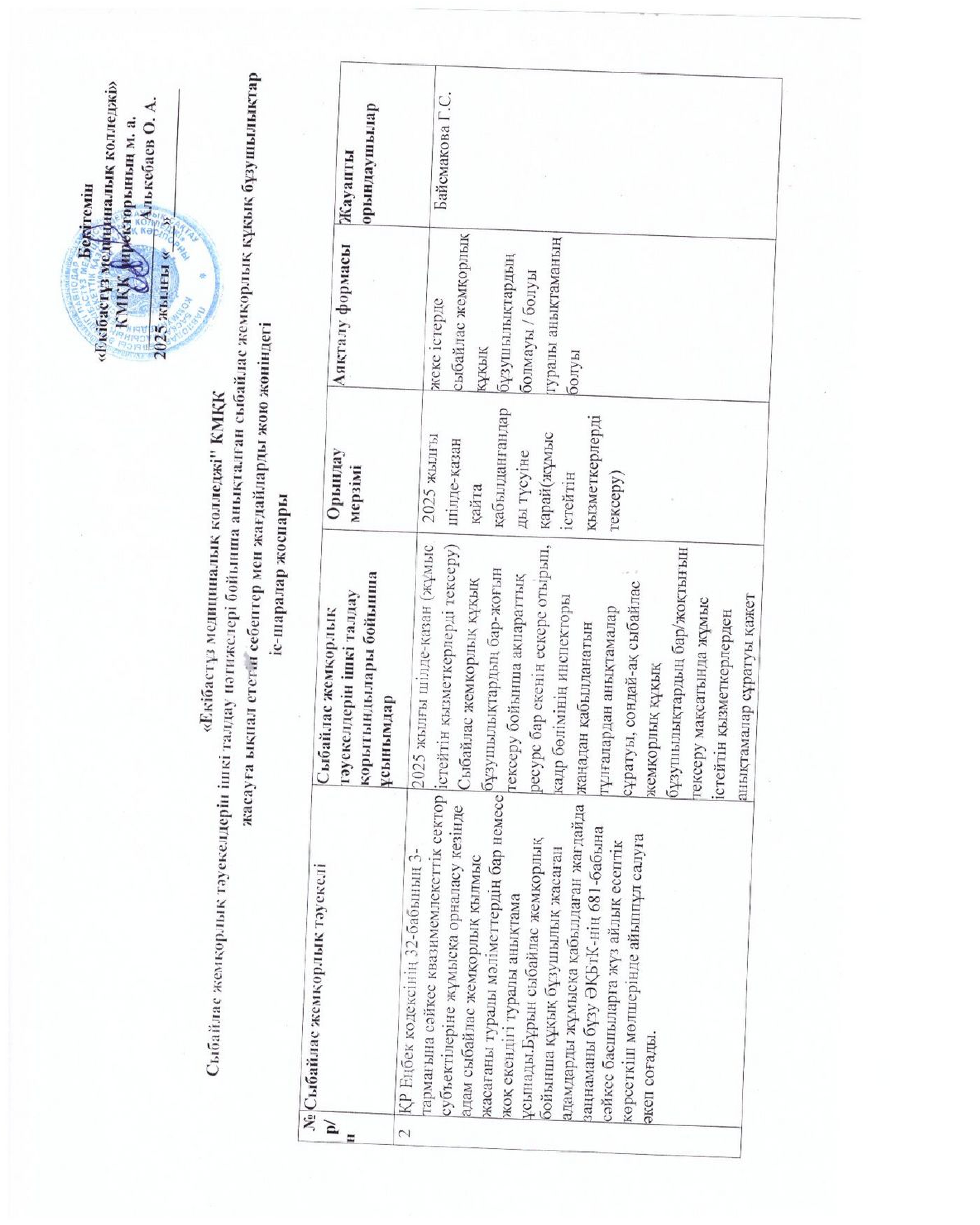 План работы колледжа
