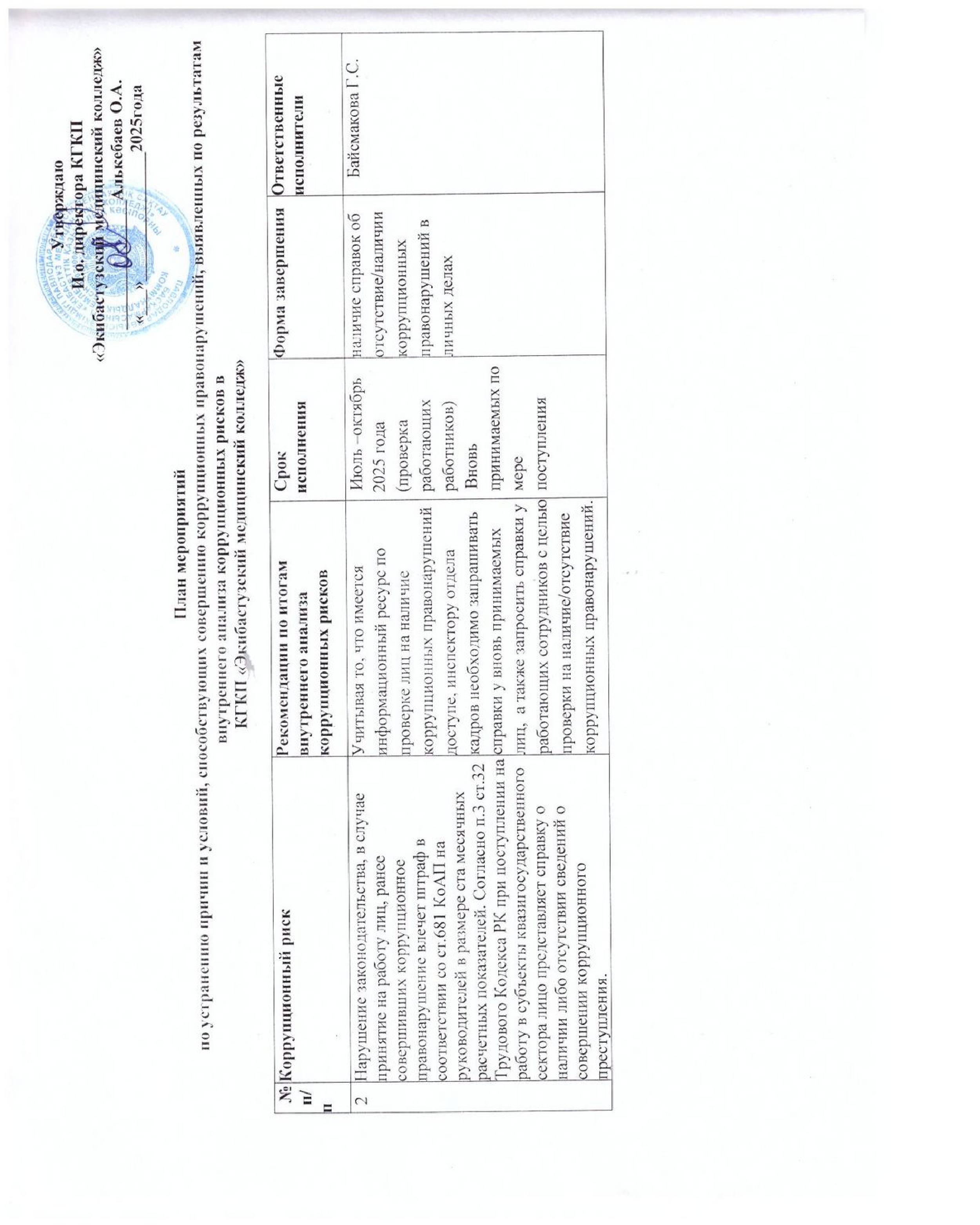 План мероприятий по устранению коррупционных рисков