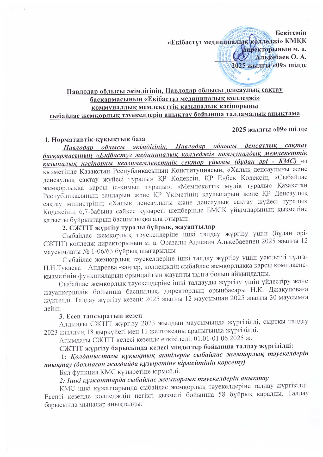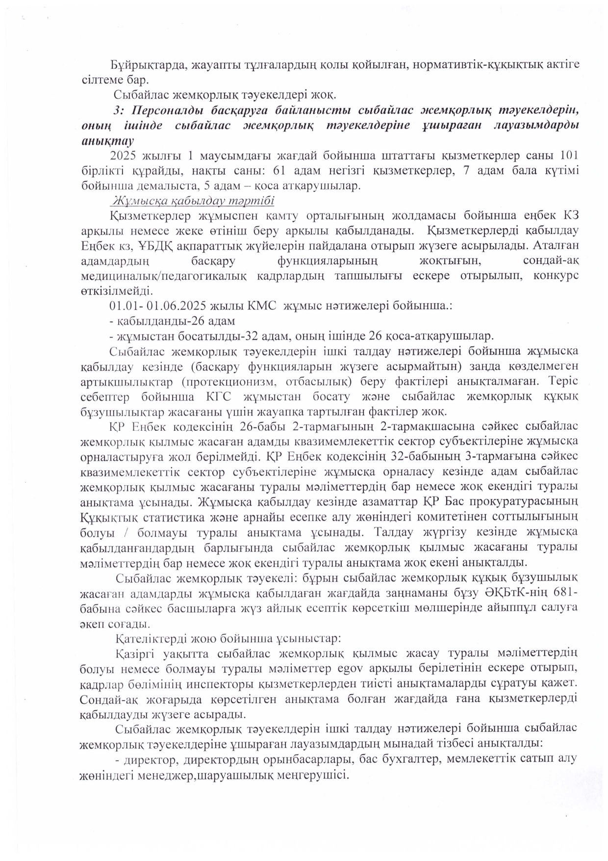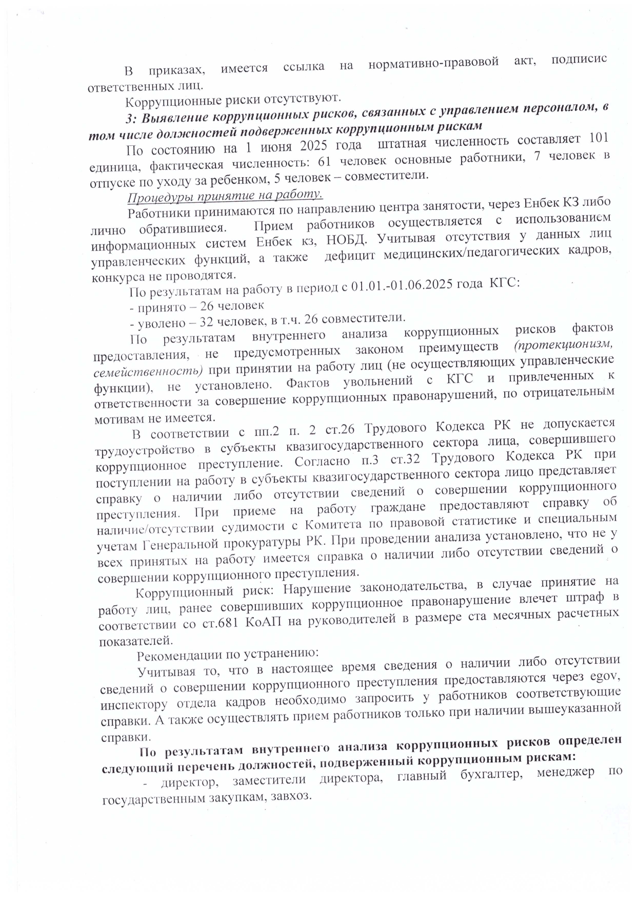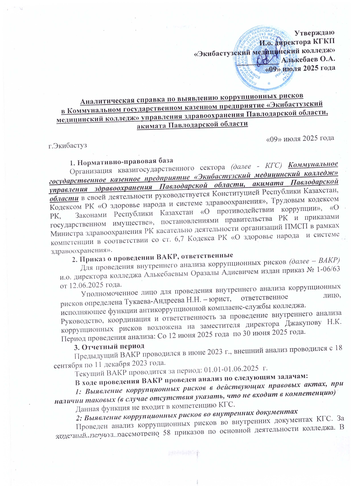 Аналитическая справка по результатам внутреннего анализа коррупционных рисков