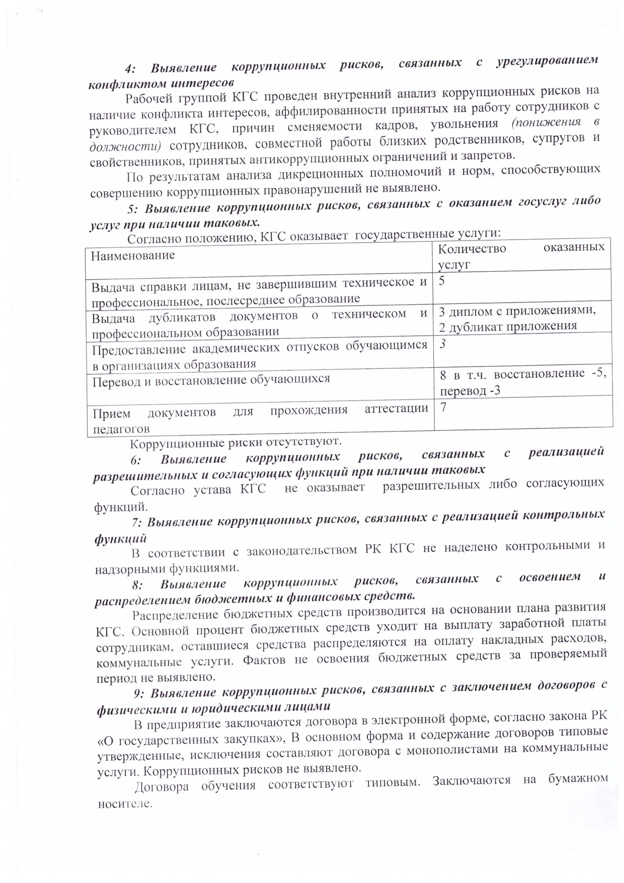 перечень коррупционных рисков, выявленных в результате внутренних и внешних анализов коррупционных рисков по сферам